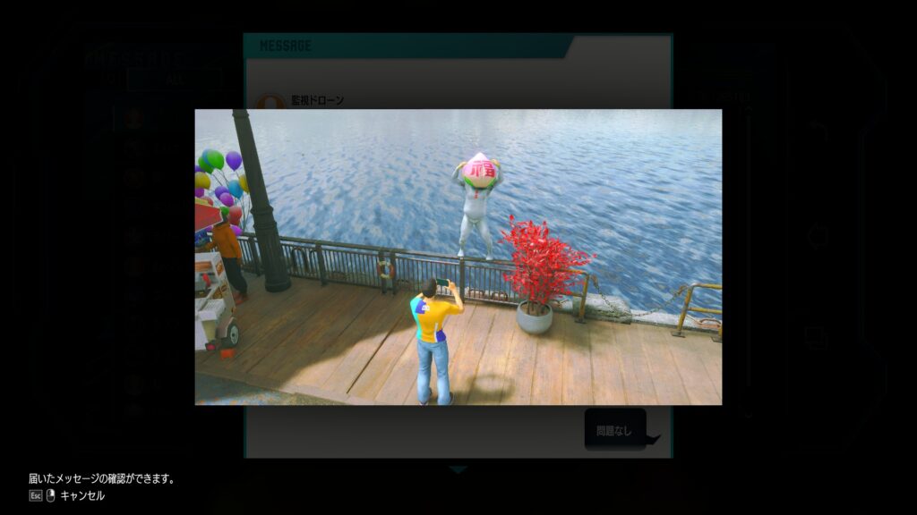 ・監視ドローンからメッセージが届き、問題なしを選択する